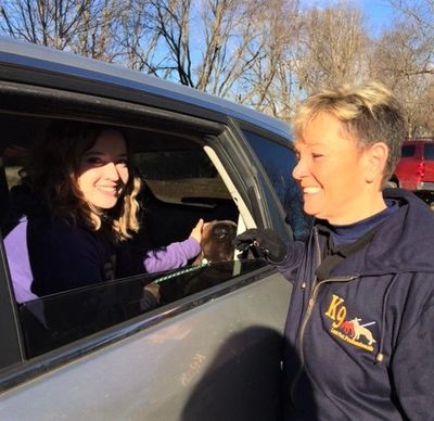 The goal was to keep Naomi out of the street and to slowly herd her into a yard or area where she could not escape. We call this “capture on the fly." Like a stealth ninja, Haeleigh was able to quietly follow Naomi until she saw a fenced area she could maneuver her into. The yard had a short fence. Naomi entered the small space and Haleigh reached over the fence and put a slip lead over her head. She quickly reached down and picked Naomi up before the little Shar Pei knew what was happening.